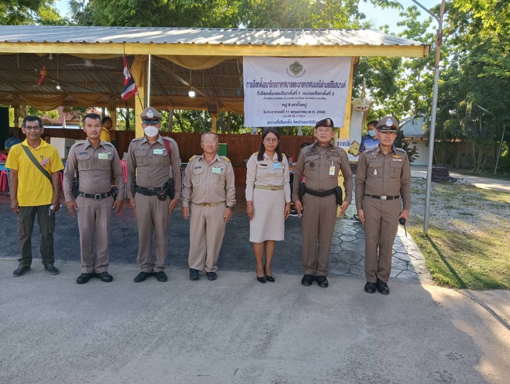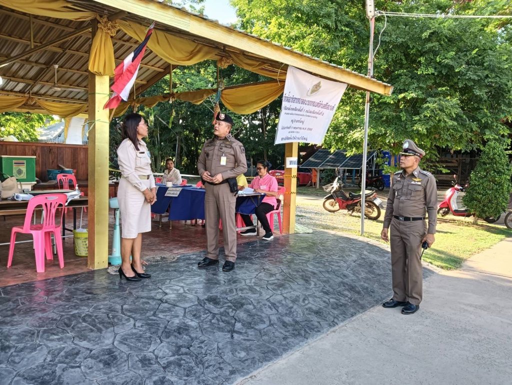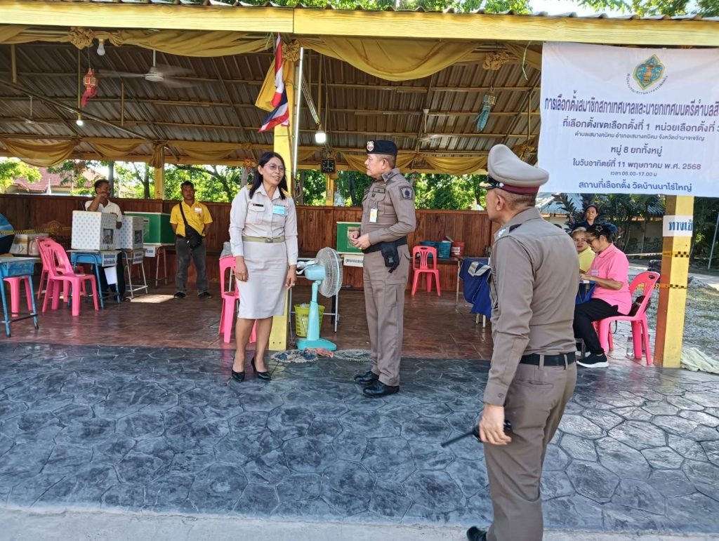 และคณะกรรมการการเลือกตั้ง และเจ้าหน้าที่ตำรวจอยู่ปฏิบัติภารกิจ การรักษาความปลอดภัยและความสงบเรียบร้อย ณ จุดเลือกตั้ง เขตเลือกตั้งที่ 1 เหตุการณ์ปกติ