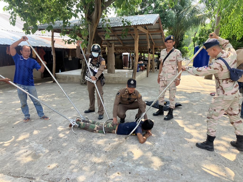 ร้อยเวร20 พร้อมสายตรวจรถยนต์ สายตรวจรถจักรยานยนต์พร้อมเจ้าที่ปกครอง ผู้นำหมู่บ้านบ้านขึมข่า หมู่ 6 และหมู่ 13 ร่วมกันให้ความรู้ในการใช้ยุทธวิธีไม้ง่าม เพื่อป้องกันเหตุเบื้องต้นในพื้นที่