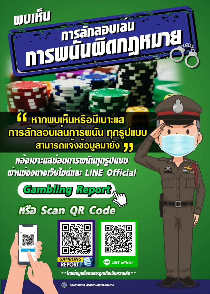 แจ้งเบาะแสบ่อนการพนันทุกรูปแบบผ่านช่องทางเว็บไซต์ และ line official
